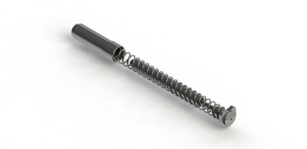 Ao reduzir o recuo, evita a colisão do batente do ferrolho com a flange (batente) da guia de mola, assim: