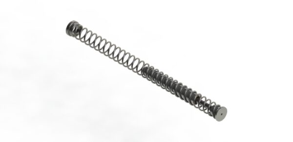 Ao reduzir o recuo, evita a colisão do batente do ferrolho com a flange (batente) da guia de mola, assim: